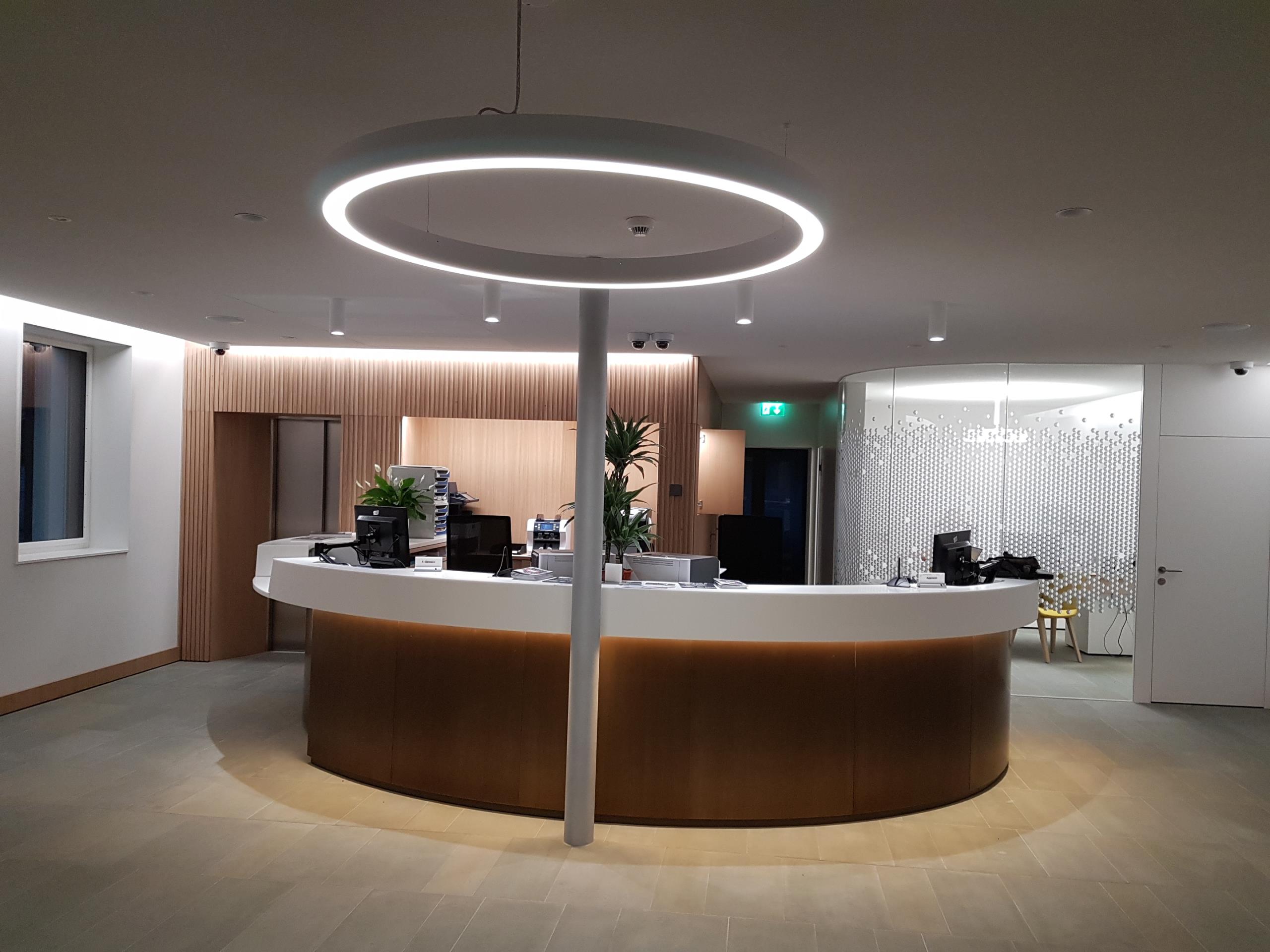 • Guichets, salles de conférences et bancomat au rez-de-chaussée ;