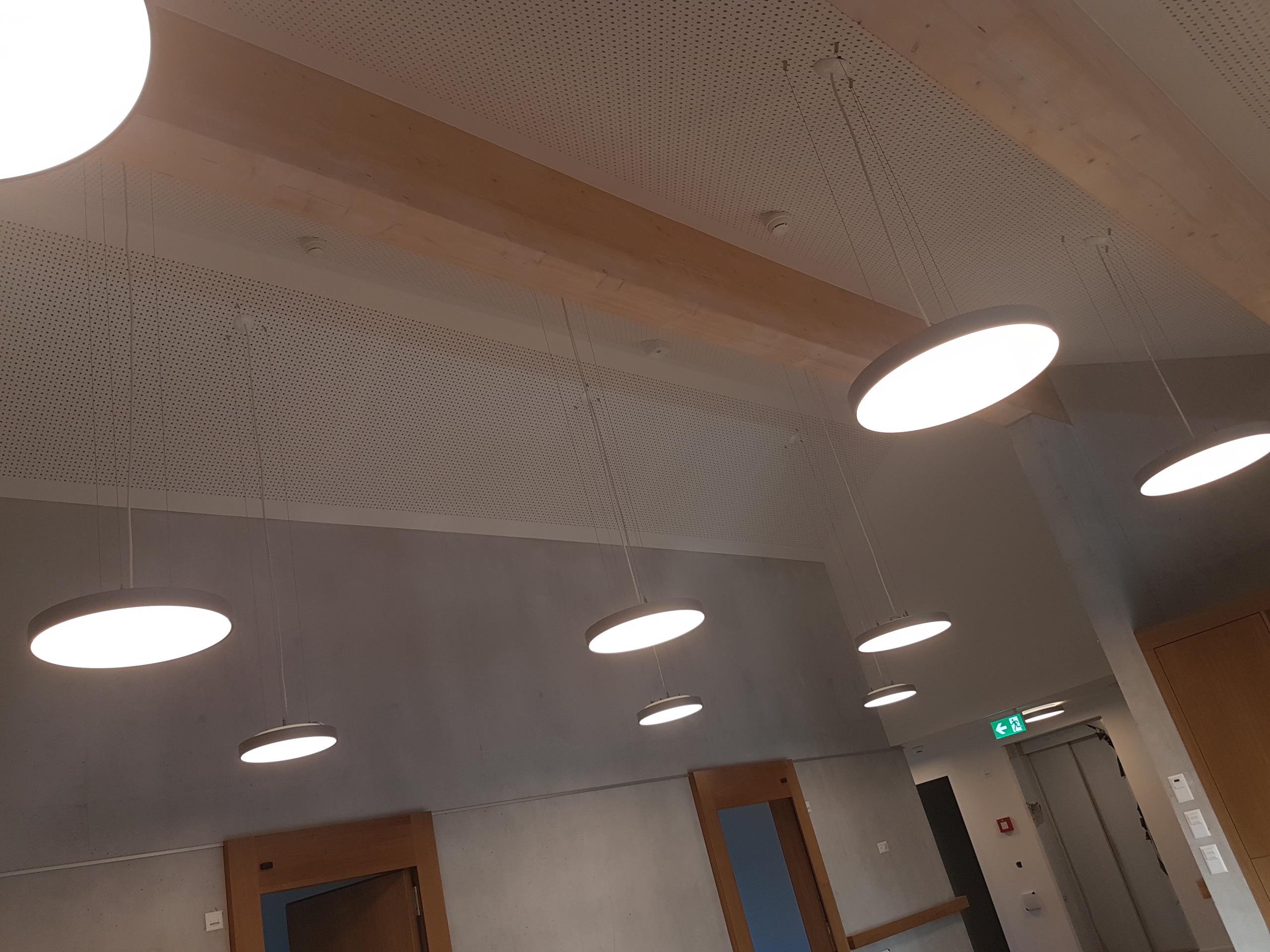 Die Sporthalle wurde auf Minergie-Standard umgebaut. Die schwierigkeit, bei diesem Umbau und Anbau, war das Architektonische mit den Leitungsführungen unter einen Hut zu bringen.
