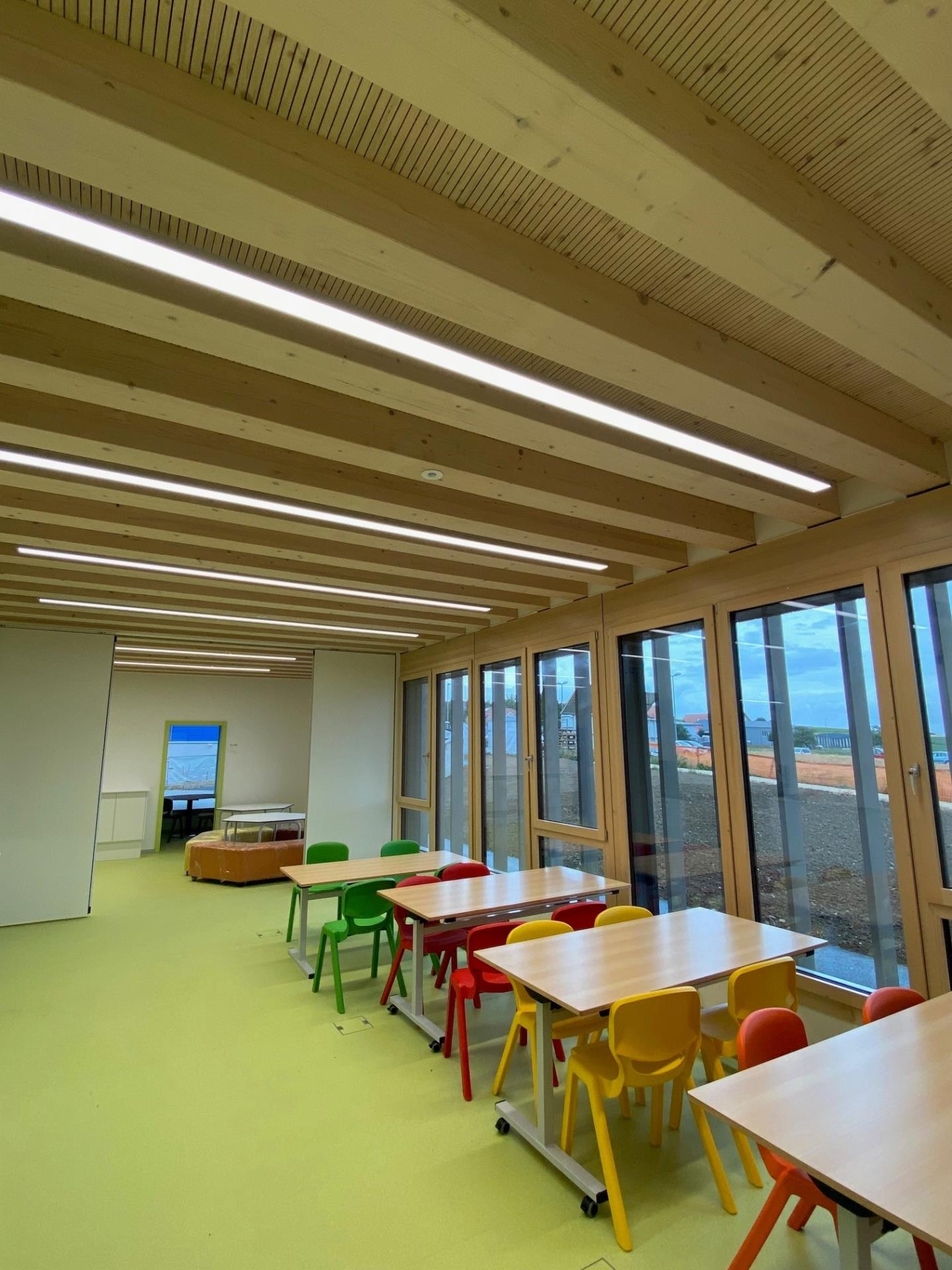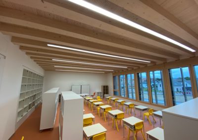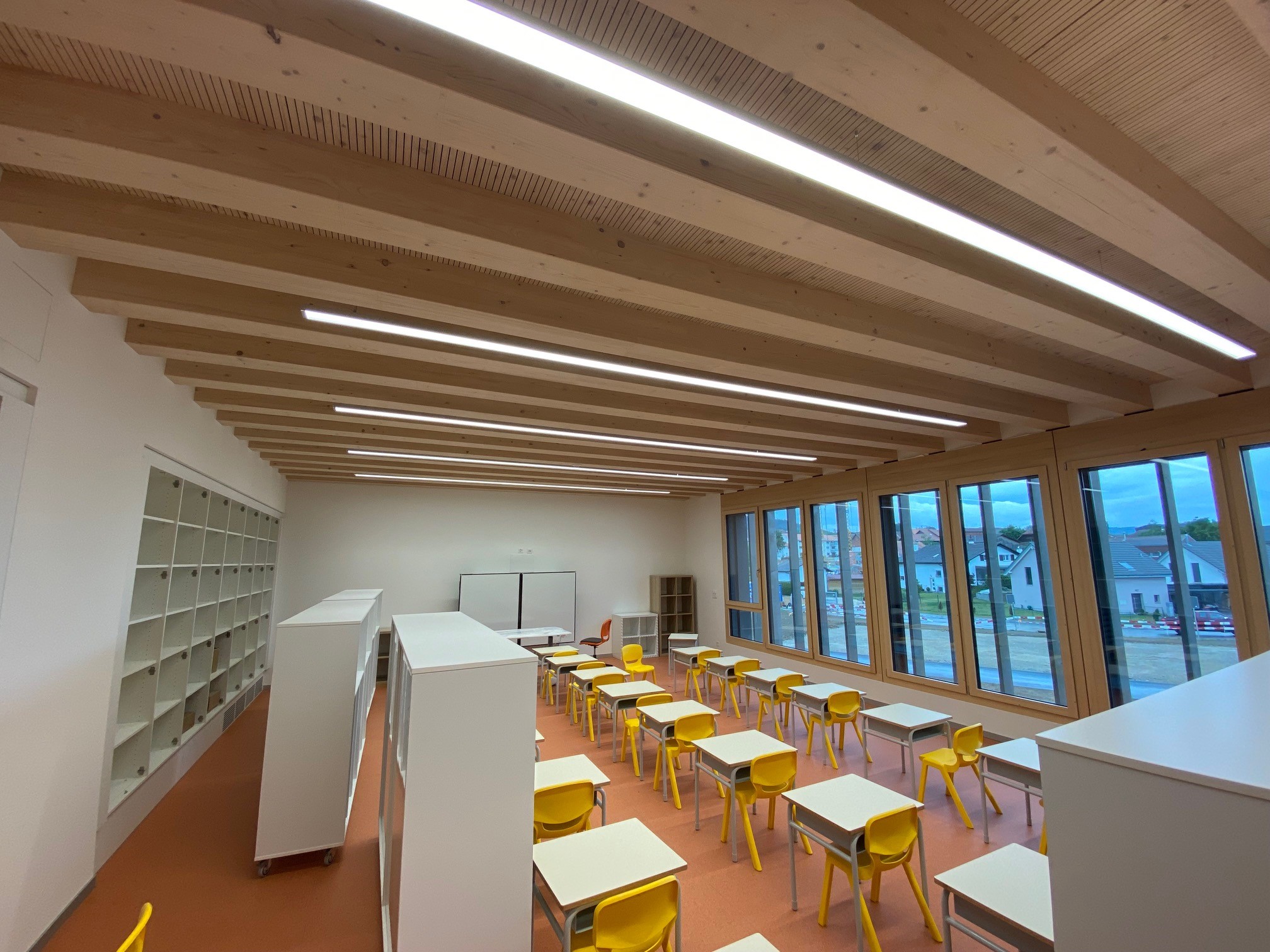 Planification des installations électriques du bâtiment. Ces installations comprennent les nouvelles introductions courant fort et faible, les liaisons avec le bâtiment de la salle polyvalente, un tableau général BT et toute la distribution secondaire, raccordement du solaire photovoltaïque, comptages, alimentations des surfaces, alimentations des installations techniques, éclairage domotique KNX, éclairage de sécurité, désenfumage, raccordement courant faible et informatique, wifi, détection incendie, sonorisation, horloges, protection contre la foudre, etc.