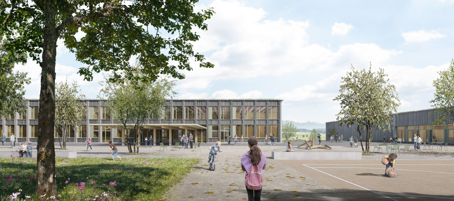 Construction d’un centre scolaire primaire comprenant un bâtiment école (32 salles de classe) et un bâtiment sport (1 salle de sport double et 1 salle de gym spécialisée).