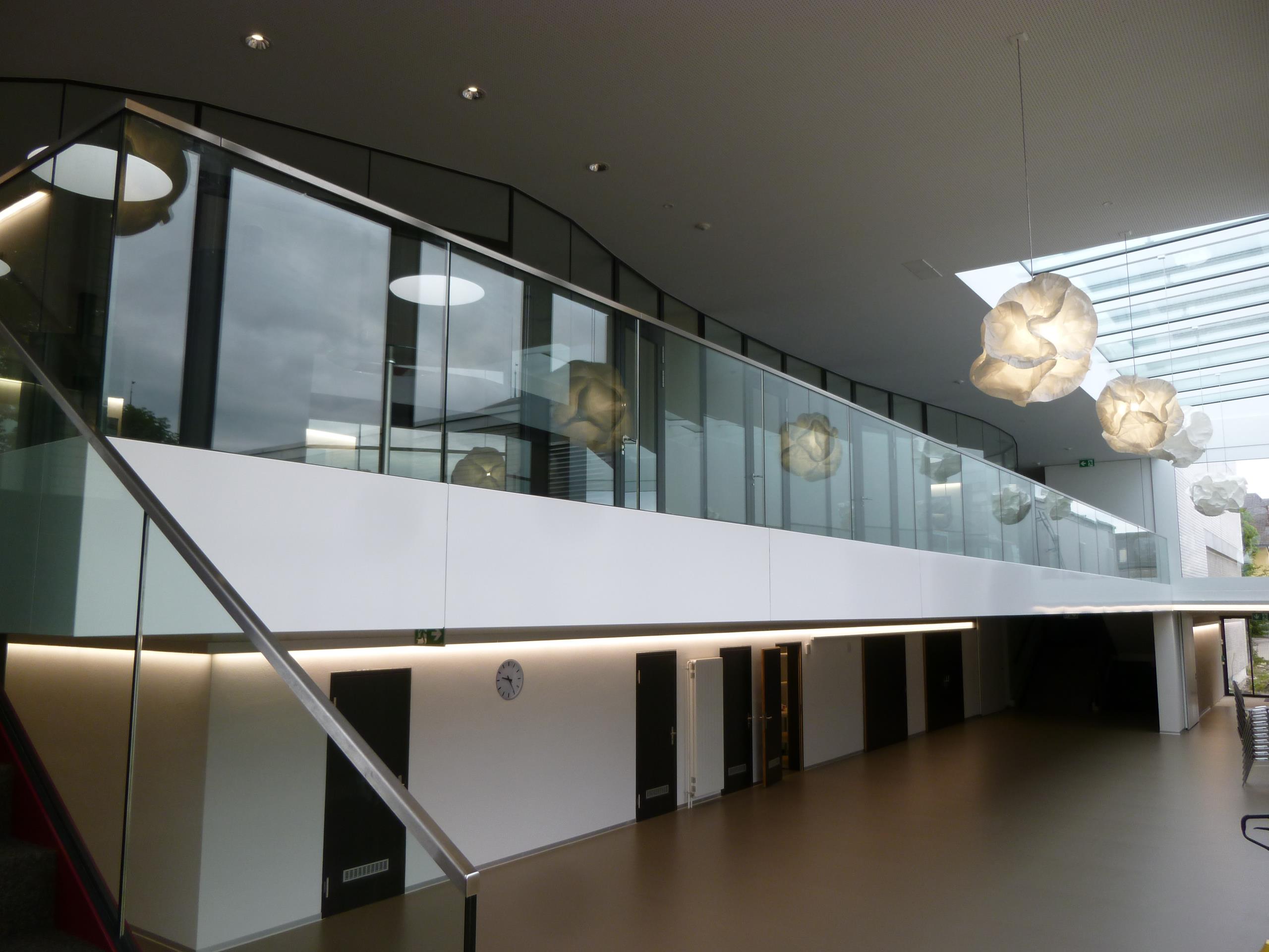 Planification complète de l’installation électrique à courant fort et à courant faible de la rénovation, y compris une surélévation supplémentaire de l’école primaire. L’école primaire a été équipée avec les derniers équipements multimédia comme : écrans TV, visualiseurs pour l’enseignement, Wi-Fi, un système téléphonique. L’établissement comprend également un système de protection contre la foudre ainsi qu’un système d’éclairage de secours. Dans l’aula/salle polyvalente, deux installations de projection modernes (beamer et haut-parleurs) qui peuvent être utilisées séparément ou simultanément ont été installés. Dans cette salle, une scène avec éclairage scénique a également été installée pour les petites représentations théâtrales ou les réunions du conseil général. Une petite cuisine ultra-moderne permet aux élèves de se restaurer ou de préparer des petits plats.