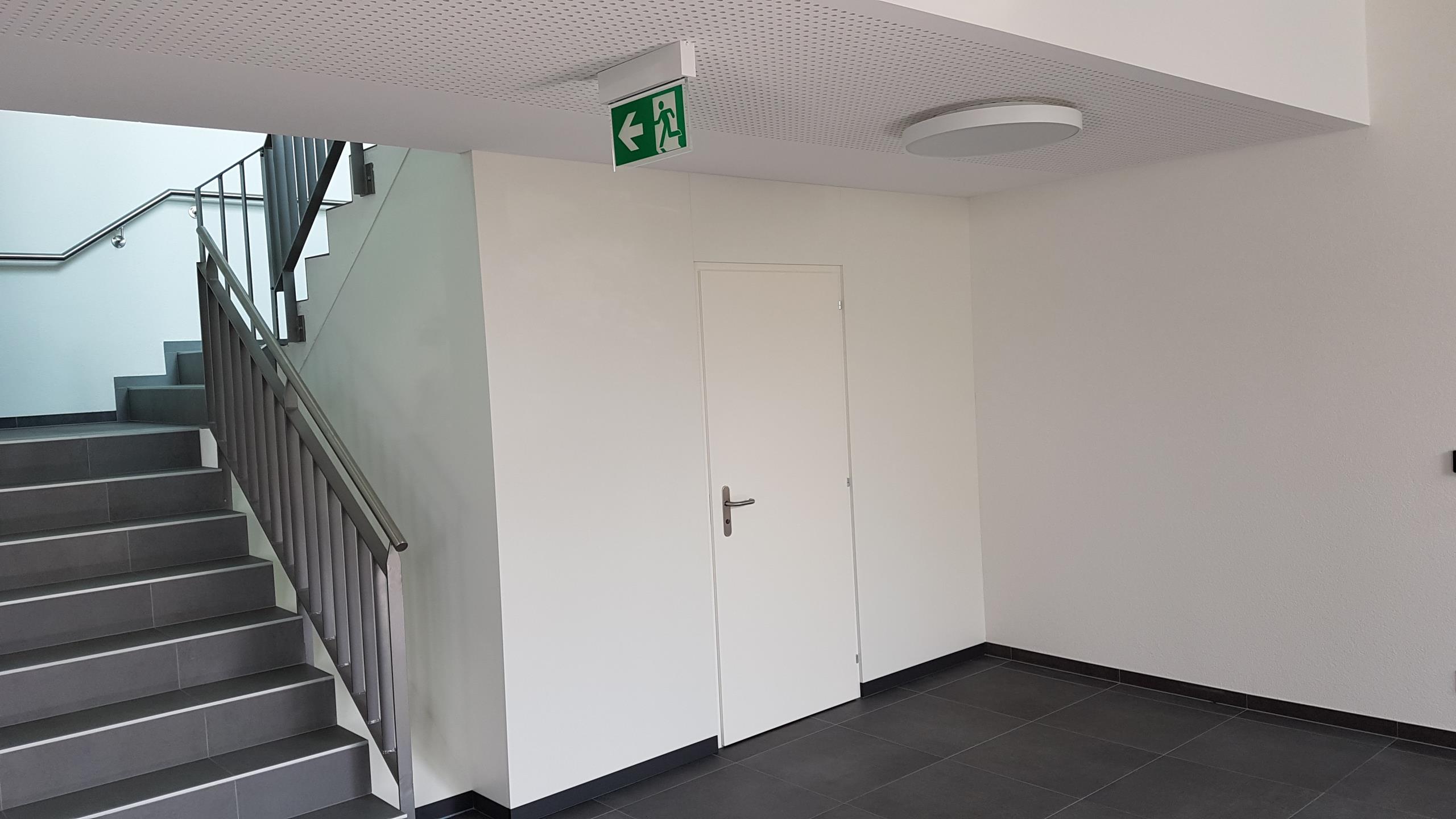 Installations à courant faible : Réseau informatique, détection incendie, contrôle de l’état des portes et vidéo surveillance et gestion technique du bâtiment (KNX).