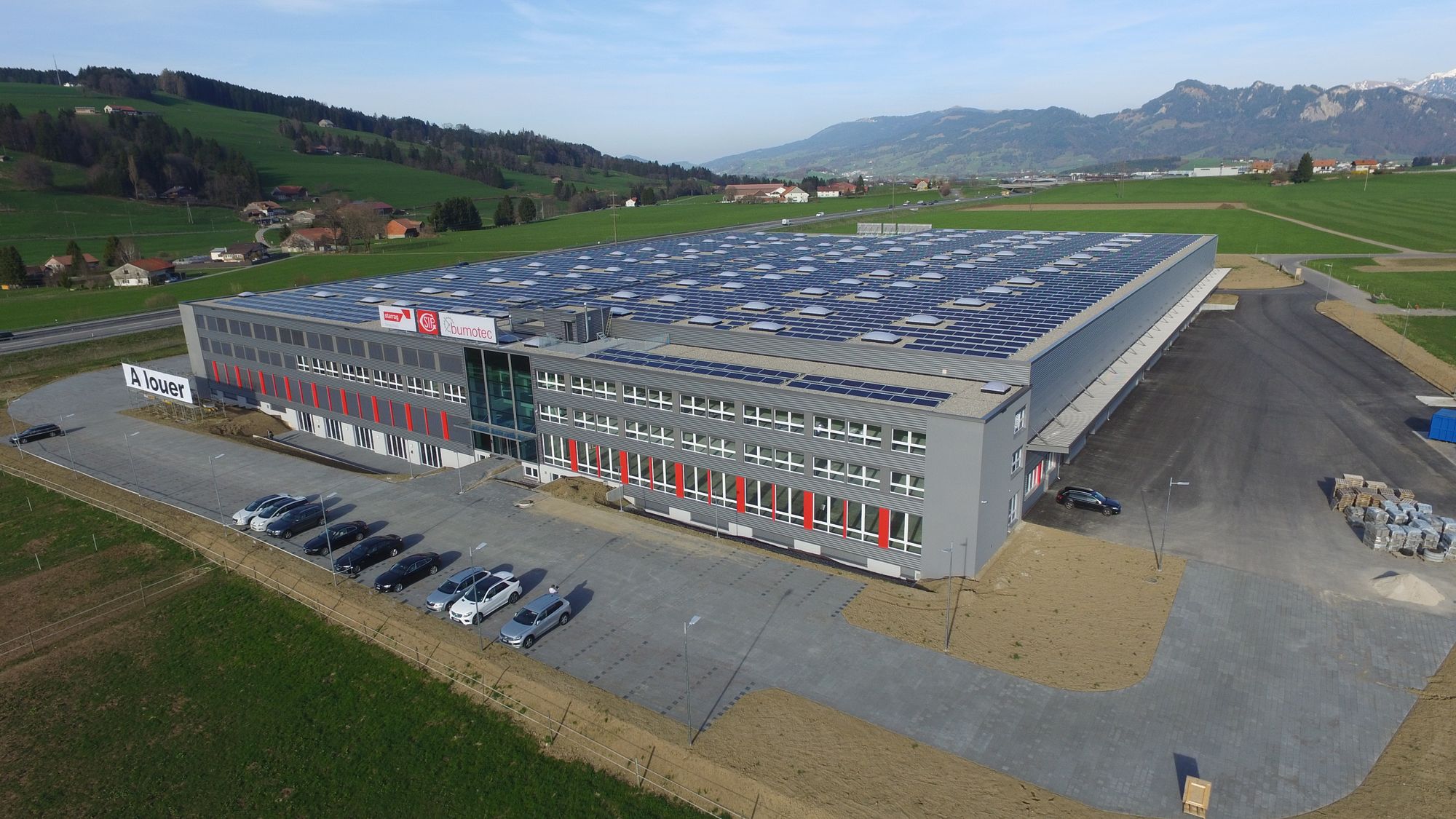 Installations électriques pour le nouveau bâtiment comprenant l’usine de production de machine-outils, le centre de développement et l’administration. Bâtiment de 12’000m2 avec une toiture entièrement couverte de capteurs solaires photovoltaïques.